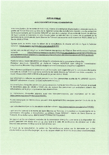 Une consultation, d’une durée de trois mois, relative à la demande d’autorisation, déposée auprès du préfet de Tarn-et-Garonne au titre de la…