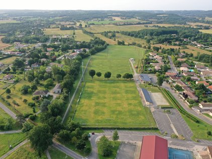 La salle des fêtes et les terrains de foot