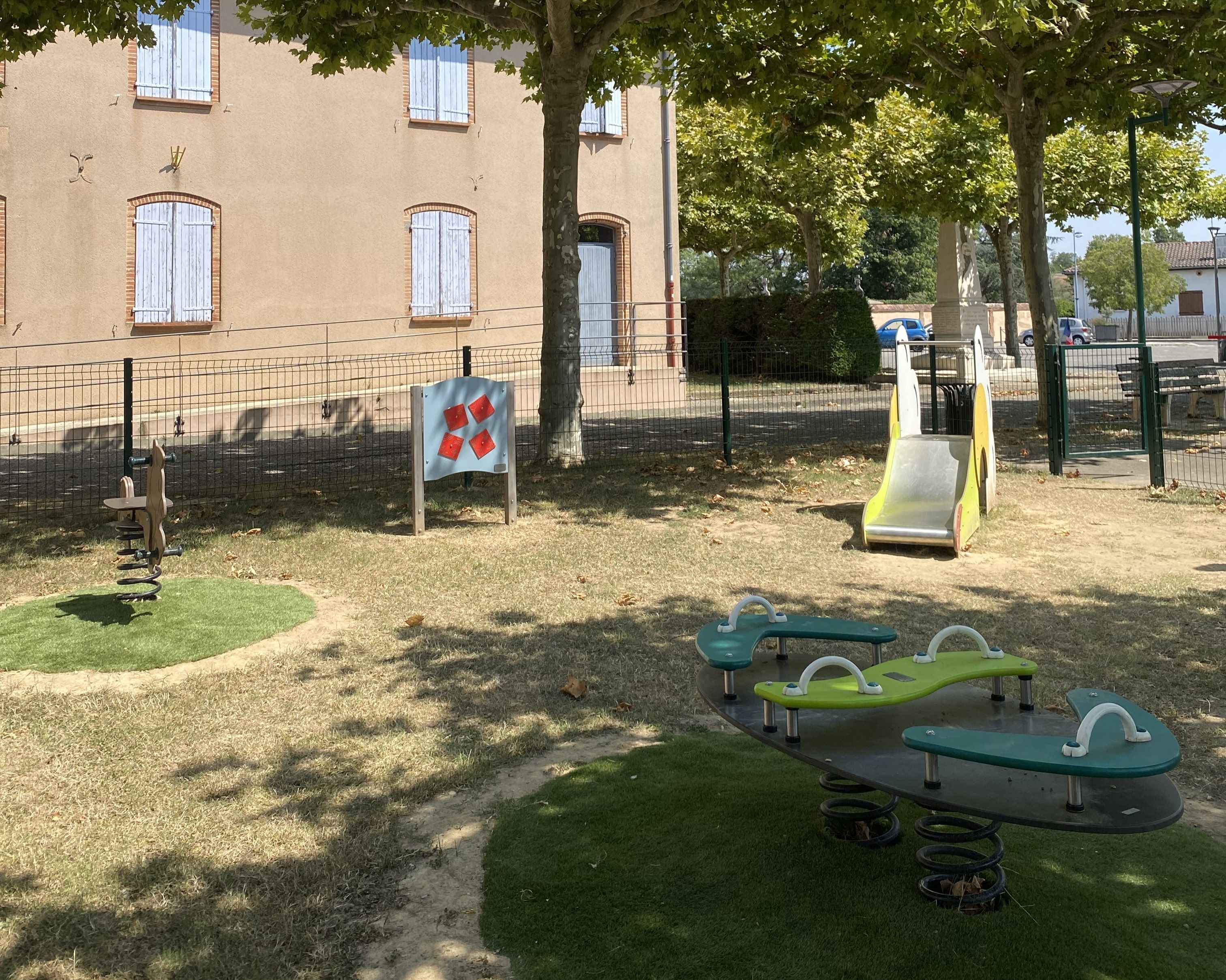 Les enfants peuvent s'amuser sur l'aire de jeux Place du Tulmonenc (ci-dessus) ou celle Place de l'église